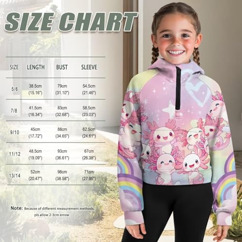 HOT ! Girls Half Zip up Hoodies Casual Long Sleeve Hooded Sweatshirts for Kids Crop Tops Fleece Pullover Coat,5-14Years