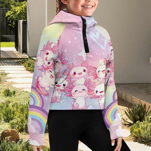 Girls Half Zip up Hoodies Casual Long Sleeve Hooded Sweatshirts for Kids Crop Tops Fleece Pullover Coat,5-14Years 4