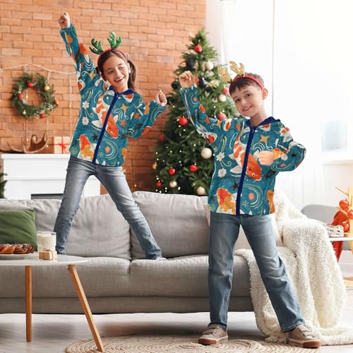 HOT ! Koi Fish Swim Among Flowers Toddler Fleece Jacket Girl Boys Hooded Fleece Jacket Coat Warm Outwear Zip-up 3-10T