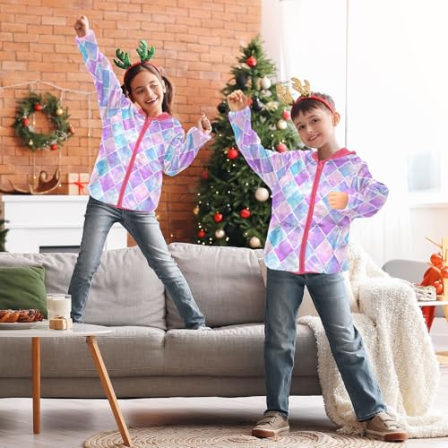 OTVEE Colorful Rhombus Purple Blue Kids Hoodie Jacket Fall Spring Full Zip Warm Outwear Coat 5
