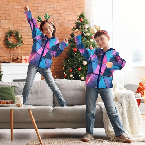 Triangular Architectural Toddler Fleece Jacket Girl Boys Hooded Fleece Jacket Coat Warm Outwear Zip-up 3-10T 3