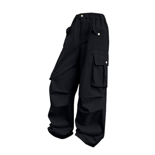 Girls Baggy Cargo Pants Straight Wide Leg Pants Teens High Elastic Waist Loose Fit Solid Color Working Trouser Clothes 6