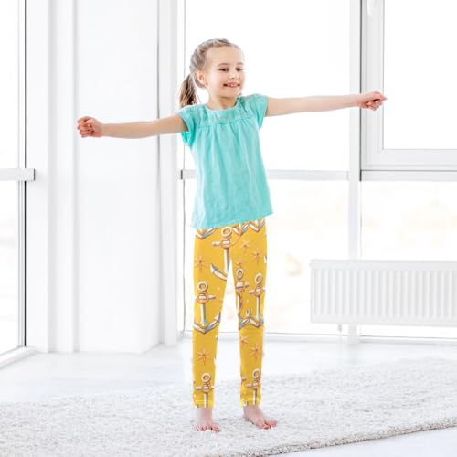 KLL Ocean Design Marine Ocean and Rope Saffron Girls Legging Stretch Full Length Workout Pants Exercise 4
