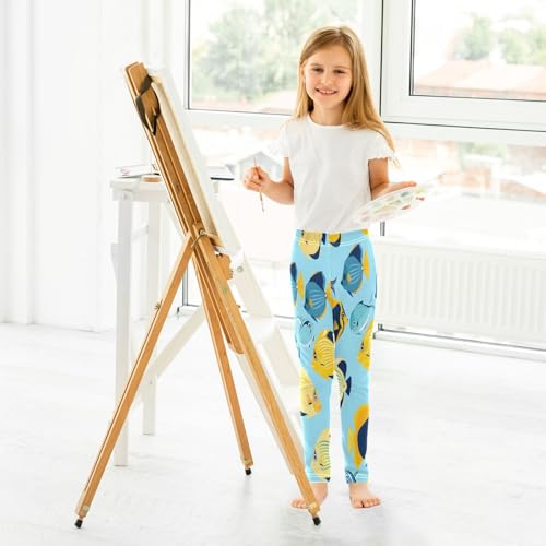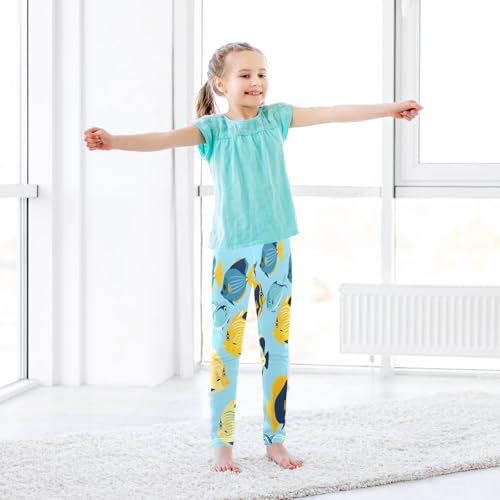 Bolaz Toddler Girls Leggings Printed Yoga Pants Leggings Yellow Blue Fish for Kids 7