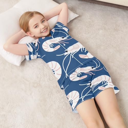 Satin Pajama Sets Short Sleeve Lobster Pattern on Blue Background_1 Button Down Silky Nightwear 2 Piece PJS 5-14Y 7