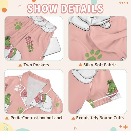 Satin Pajama Sets Short Sleeve Cute Cats with Hats Button Down Silky Nightwear 2 Piece PJS 5-14Y 2