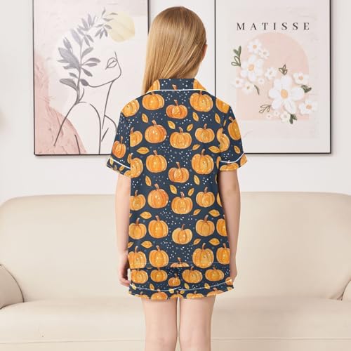 Thanksgiving Pumpkin Fall Leaf Pajamas Set Soft Satin Pjs Sets 2 Piece Short Sleeve Sleepwear Casual Loungewear 4