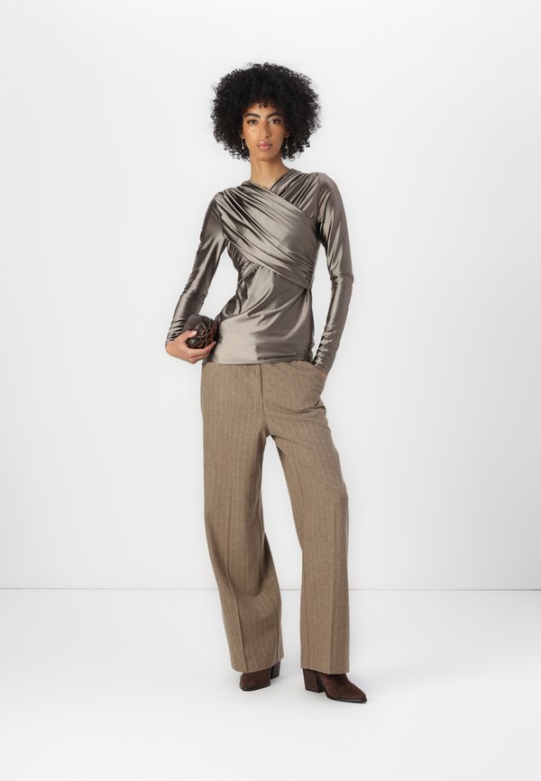KIRA GLOSSY STRETCH - Long sleeved top - taupe 1