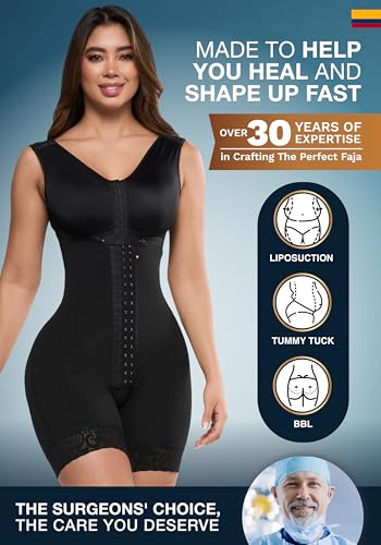 • UNBEATABLE BENEFITS: Experts on bbl faja, our fajas post surgery compression have 4-level front hooks, built-in bra, sliding fabric on gusset, wide straps and nylon in the butt area for more enhancement. This mid-thigh faja helps to improve posture and is made of a blend of polyamide and elastane. When it comes to liposuction compression garments, this bbl shapewear is an unbeatable option for a stage 2 faja with bra. Fits better on inverted triangle, rectangle, apple, and hourglass body types