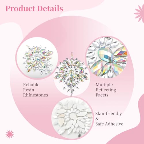 • 【Easy & Skin-friendly Application】Applying these rhinestone pasties is a breeze. Simply dry your skin, peel the pasties from their plastic backings, and gently adhere them to your skin. They are designed to be skin-friendly and non-irritating, ensuring both safety and comfort. Please note: Avoid use on sensitive or allergic skin.
