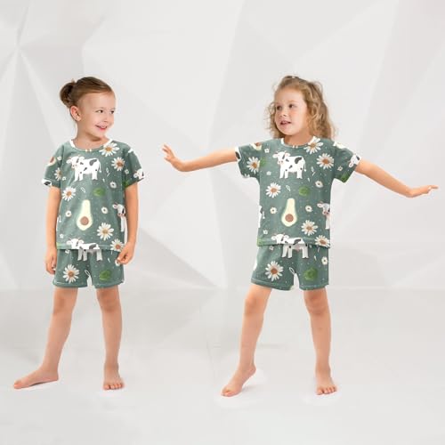 ALAZA Cow Daisy Flower Avocado Pajamas Short Sleeve 2 Piece Sleepwear Top and Bottom Pajama Set Unisex 2