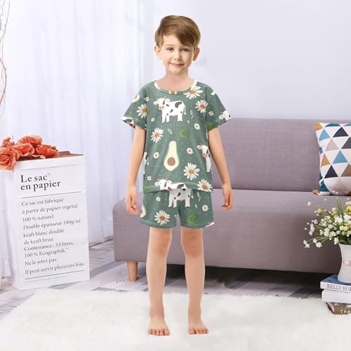 ALAZA Cow Daisy Flower Avocado Pajamas Short Sleeve 2 Piece Sleepwear Top and Bottom Pajama Set Unisex 6