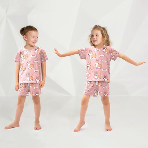 senya Short Sleeve Pajamas Sets Summer Cotton Sleepwear Corgi Bones Love 1