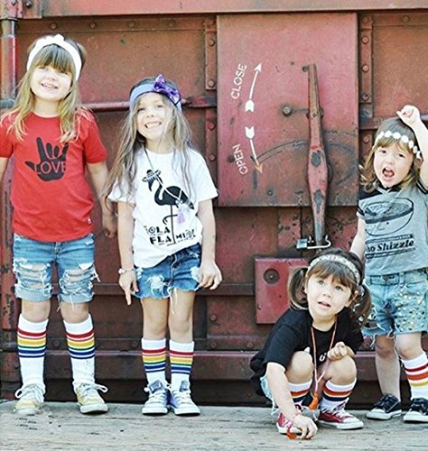 • Fashionable rainbow stripe mid-calf socks. S size is for 1-2 years infant and toddler babies; M size fits for 2-4 years old better; L sizes for 4-6 years old, XL size fit for 6-9 years old kids. Whether the socks are over calf or knee, it depends on your girls/boys leg length.