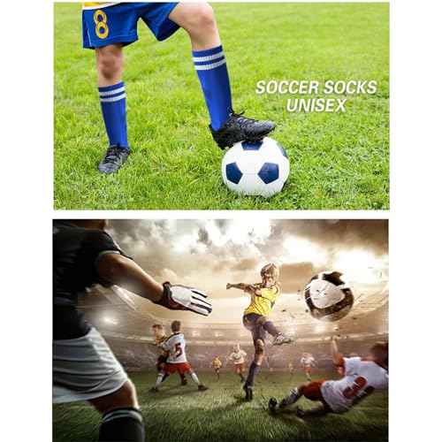 • Material: Knee high soccer socks for kids are made of polyester and spandex, breathable mesh and stretchy, soft and breathable, provided with good air permeability and moisture absorption performance, keeps your feet and legs cool and comfortable all day during athletic team sports.