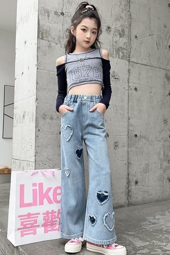 NABER Kids Girls Casual Baggy Wide Leg Denim Pants Elastic Waist Casual Jeans Age 5-14 5