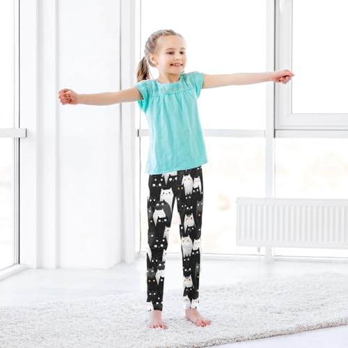 Girls Leggings Black and White Cat Soft Toddler Leggings for Girls Kids Pants Size 4T-10T 5