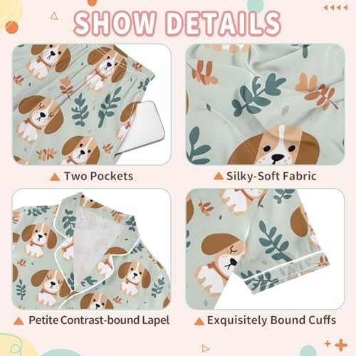 More information about Cartoon Beagles Print Summer Satin Pajama Set, Cute Button-Down Sleepwear Pj Set for Sleep Wears