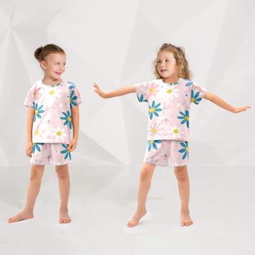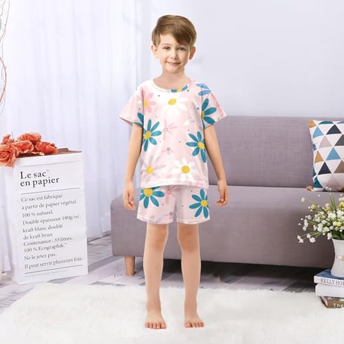 Summer Pajama Set Blue White Purple Pink Flowers, Short Sleeve Sleepwear Nightwear 2