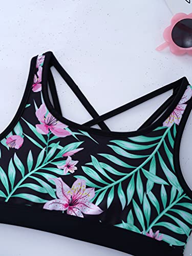Kids Girls 3 Piece Swimsuit Hawaiian Tankinis Outfit Beach Swimwear Crop Top with Bottom 6