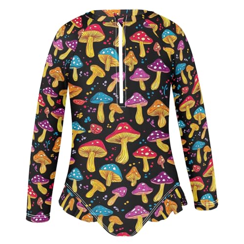 One Piece Girls Swimsuit Long Sleeve Sun Protection Rash Guard Swimwear Beach Bathing Suit Kids 6