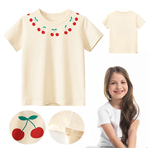 Betadog Toddler Kids Short Sleeve Graphic T-Shirt Pure Cotton Cherry Fruit Pattern Casual Top Girls Gifts for 5