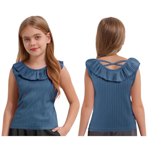 Kids Girls Cute Ruffle Ribbed Vest Sleeveless Cross Back Tank Top Summer Vacation Beach Casual Wear 5