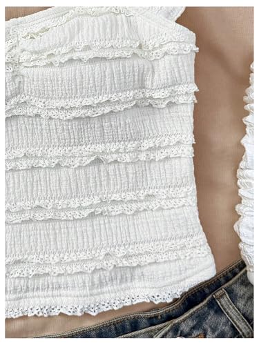 HOT ! Women's Y2K Lace Ruffle Trim Tank Tops Textured Sleeveless Crop Girly Top Cutecore Clothes