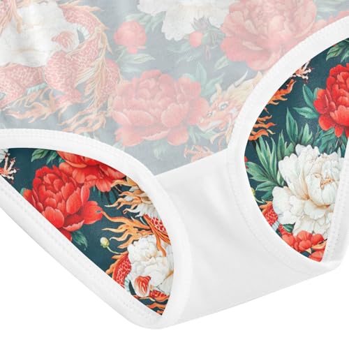 Joisal Florals Girls Underwear Toddler 2t Cotton Little Girl Panties Red Chinese Dragon White Peonies Briefs Underpants 4