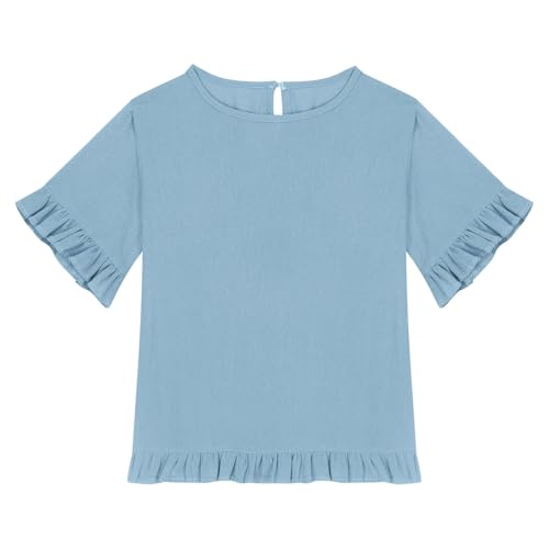 More information about Toddler Girls Short Sleeve Ruffled Shirts 2025 Kids Trendy Cotton Linen Tops Youth Girl Cute Crewneck Summer Clothes Blouse