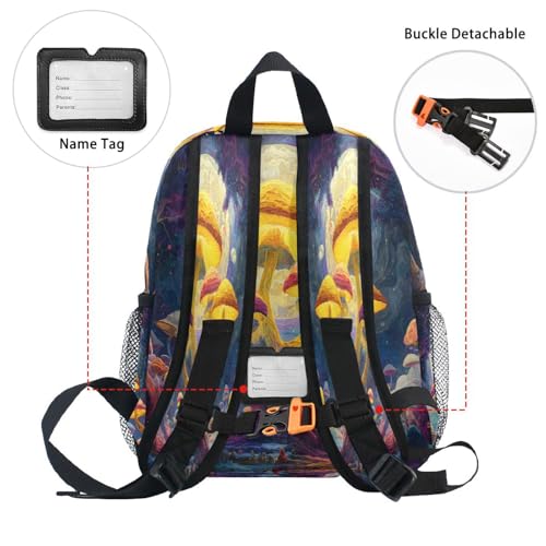 panksolu Magic Big Mushroom Toddler Backpack for Boys Girls,Kid Backpack with Chest Clip and Name Tag, M 4