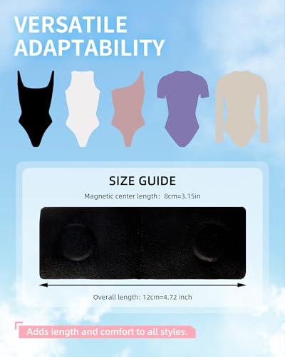 • Perfectly Adapts to Any Style: Whether you're wearing bodysuits, shapewear, or other form-fitting garments, this magnetic bodysuit extender provides extra length and comfort, seamlessly adapting to all your favorite pieces.