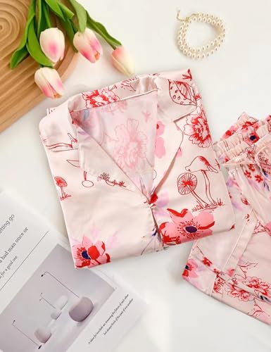 • Features: Silk pajamas for women cute floral pjs sets design with long sleeve, button down, wide leg, elastic waist, cute floral print pajama sets for women
