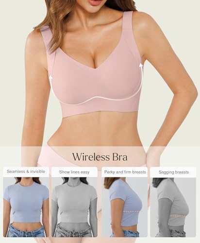 • INVISIBLE WIRELESS DESIGN: Utilizing jelly strip technology and smooth bonded edges, this bra eliminates stitching for a seamless and comfortable feel. It’s virtually invisible under T-shirts and fitted tops, offering feather-light coverage and natural shaping, even during low-impact activities
