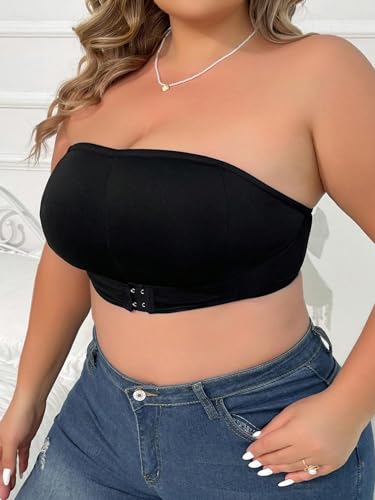 WDIRARA Women's Plus Size Solid Button Front Bandeau Bra Strapless Wireless Bras 4