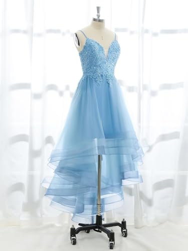 • Features: Built-in-bra, with lining, tulle, high low, sleeveless, spaghetti strap, v neck, a line, lace appliques, back lace up, midi length, homecoming dresses for teens, high low prom dresses, cocktail party dresses, midi length formal dresses, graduation dresses, party dresses, evening gowns.