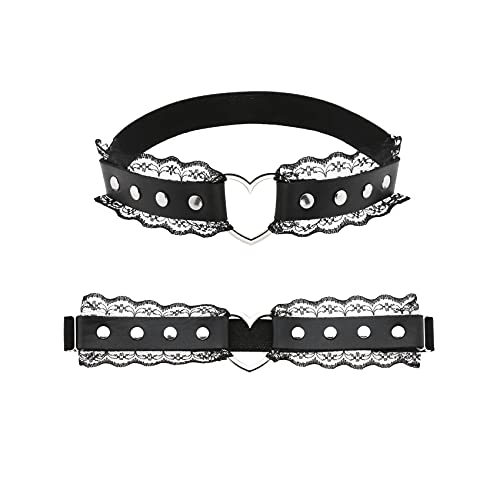 • [Premium Material] This black leg garters were made of faux leather, lace, alloy and elastic band, fashion, comfortable and durable.