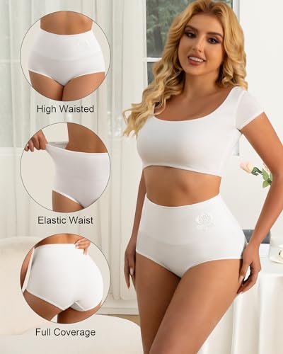 Women's Cotton Underwear High Waisted Comfortable Tummy Control Stretch Soft Full Coverage Breathable Briefs 5-6 Packs 4
