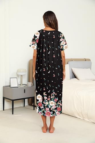 Ekouaer Women's House Dress with Pockets Long Nightgowns for Women House Dress Pleated Front Moo Moos for Women S-XXXL 3