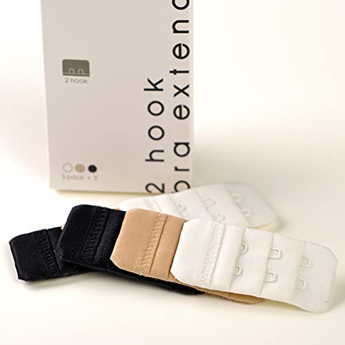 2 Hook Bra Extenders:easily attaches to bras to increase band size during weight gain, pregnancy & maternity,3 pack(white,beige and black) × 2 2