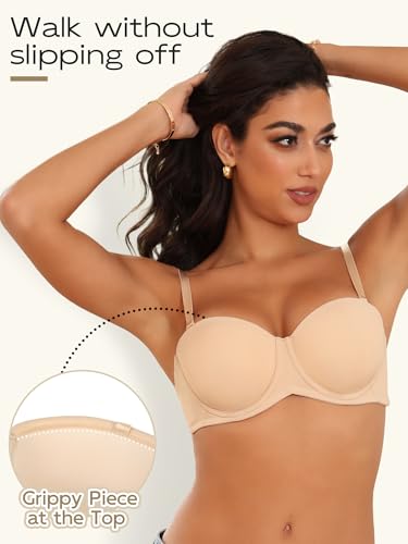 Women's Strapless Bra Multiway Lift Padded Underwire Bra Anti Slip Full Coverage Convertible Brassie 4