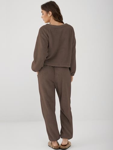 More information about ZAFUL Women's Fuzzy Lounge Casual Pajamas Sets Long Sleeve Fleece Pullover and Pants Set 2 Piece Fluffy Loungewear Sleepwear