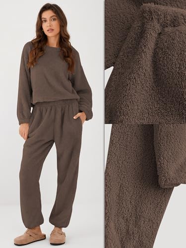 • Features: Fuzzy sweater loungewear set, Long sleeve pullover tops, Sherpa Fleece long pants