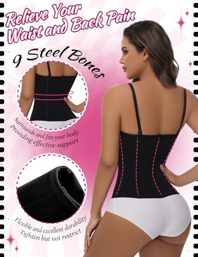 SHAPSHE Waist Trainer for Women Tummy Control Vest Black Corset Shapewear Bustier Tank Tops Going Out Body Shaper with Straps 6