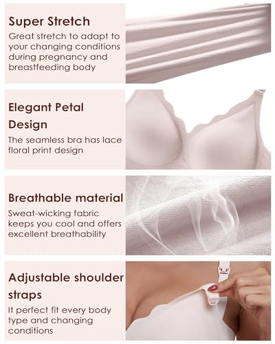 • 【Nursing Bras for Breastfeeding and Pumping】 The maternity nursing & maternity bras has one-handed breastfeeding clasp and adjustable shoulder straps that mean you can breastfeed whenever your baby is hungry. High-stretch and adjustable shoulder straps won't pressure your shoulder and can be adjusted to a comfortable state for your figure.