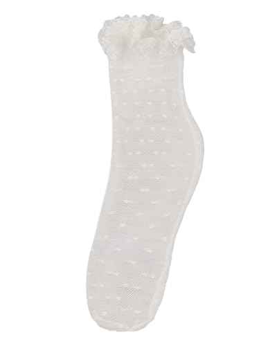 HOT ! MeMoi Girls Mesh Dot Pattern Lace Trim Ankle Sock