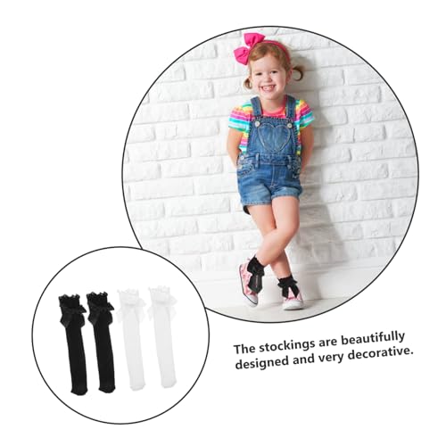• Bow decor socks:made from lace and mesh materials, these knee-high socks for are crafted with lace and mesh fabrics,little girl socks