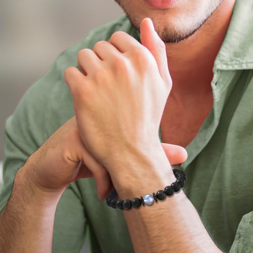 • Material & Size: Every 8mm Natural Volcanic Rock Stone and Moonstone is carefully selected by our professionals. Girth is 7.5 inches, it fits well, nice and tight for most men wrist, made of high quality strong elastic ropes, easy to take off and put on. A beautiful and meaningful bracelet can also be worn with various styles of clothing