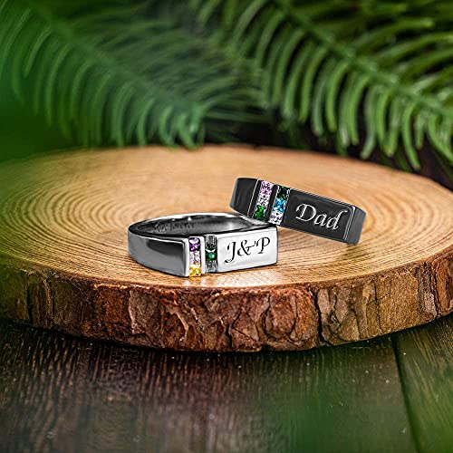 • Personalized Mens Ring Silver Dad Ring with Birthstone Men's Ring Dad Birthday Gift Husband Gift Dad Signet Ring Fathers Day Ring Gift for Dad Ring for Men Gold Dad Ring