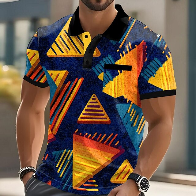 More information about Men's Geometric Pattern Polo Short Sleeve Polo Shirts Collared Shirts Casual Outdoor Athleisure Daily Wear Pocket 3D Print Buttons Summer Yellow Red Blue